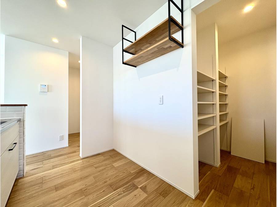 室内には、テレワークや学習に便利なワークスペースや、キッチン周りをスッキリさせるパントリーを完備。