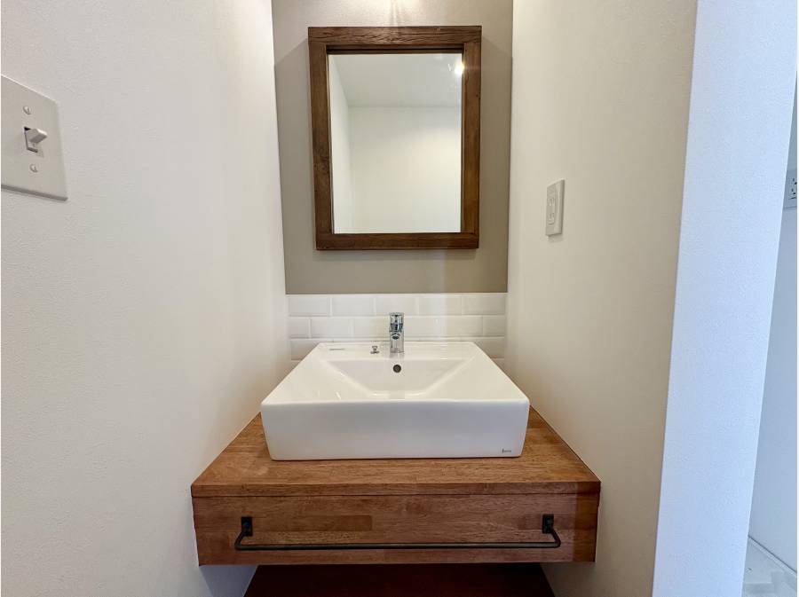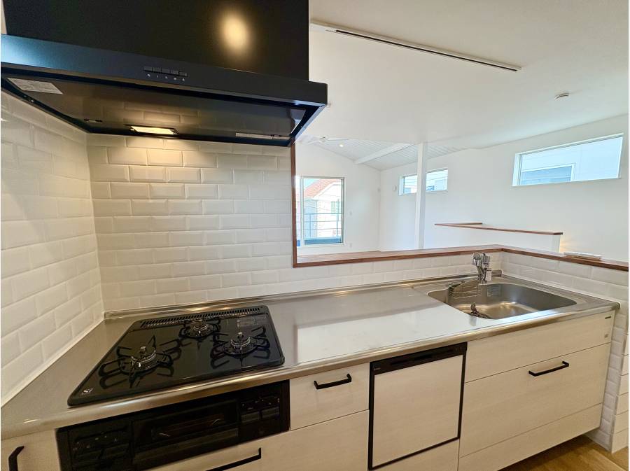 対面キッチンには空間を引き立てる「下がり天井」を採用し、お洒落なカフェのような居心地の良い雰囲気を演出しています。