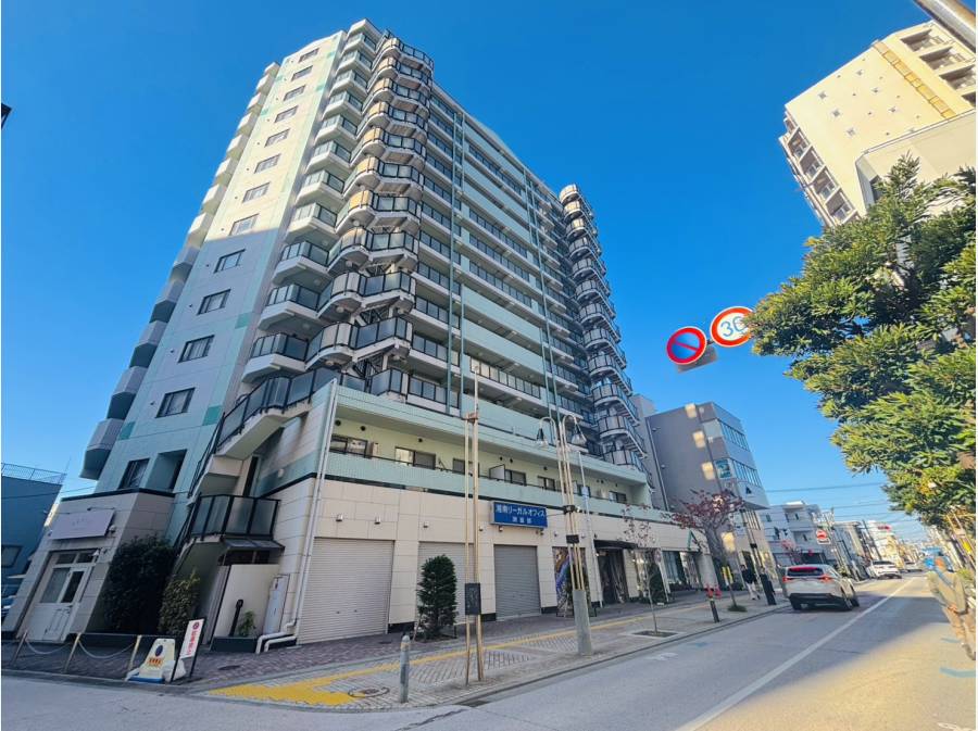 積水ハウス旧分譲の駅前の通り沿いに面した地上14階建で、総戸数は77戸。