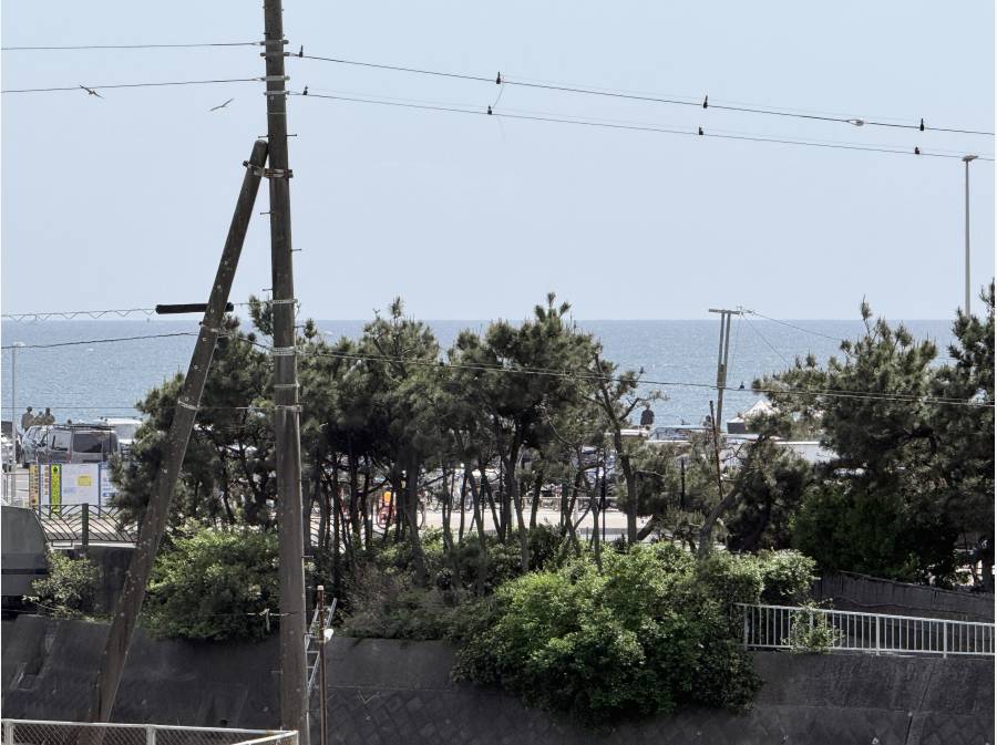 バルコニーから眺める青い海。