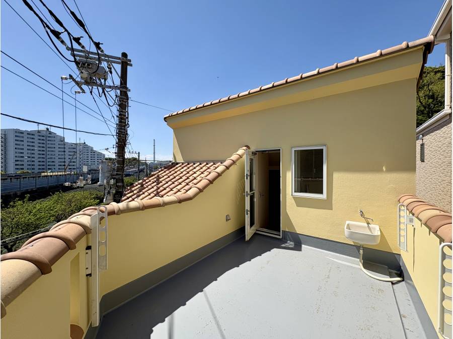 屋上のルーフバルコニーは、洗濯物にも嬉しい日当たり良好のスペース、日光浴も楽しめそうです。
