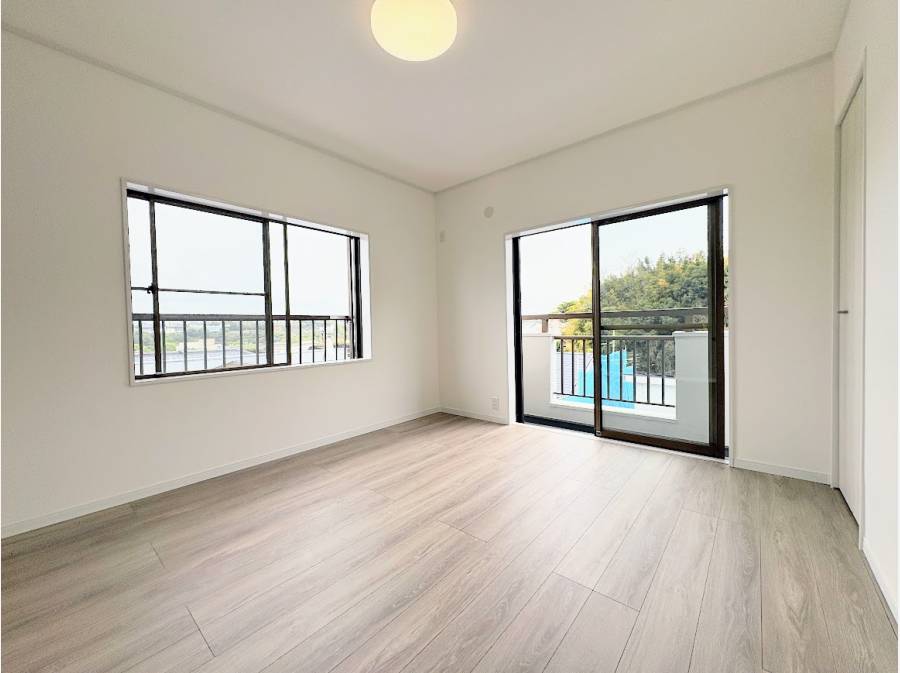 最大の魅力は、開放感あふれる広いお庭。南・東の二面が開けているため、室内までたっぷりと陽光が差し込み、眺望も良好です。