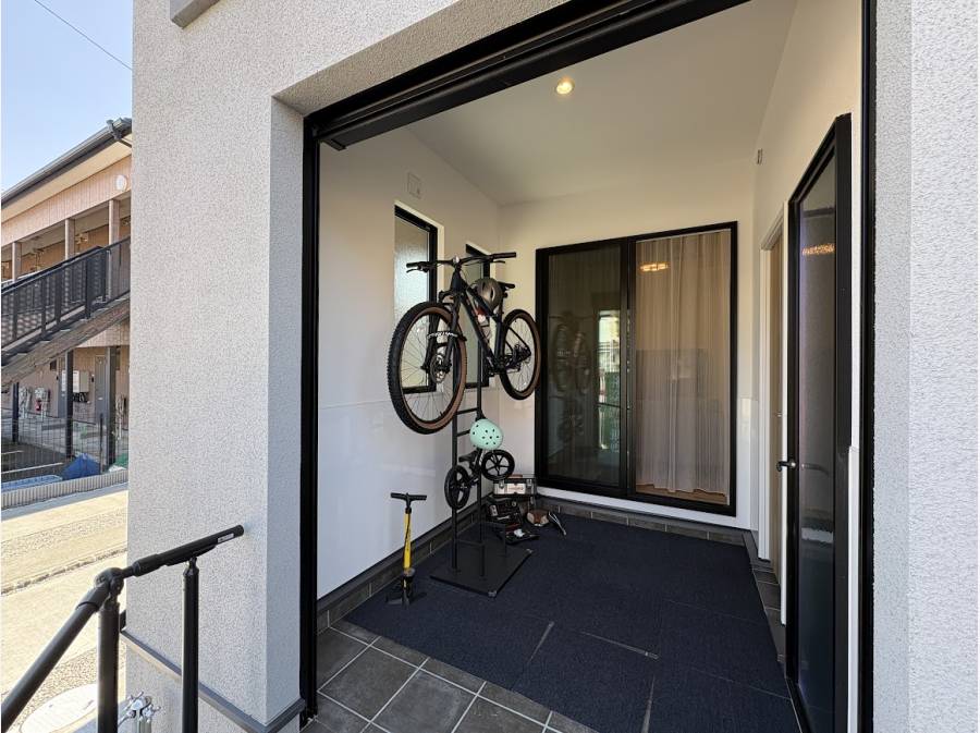 お気に入りの自転車のメンテナンス、サーフボードのワックスアップ、あるいは夏のお子様の水遊びまで。日常の中に「非日常」を溶け込ませる、住む人の個性が光る空間です。