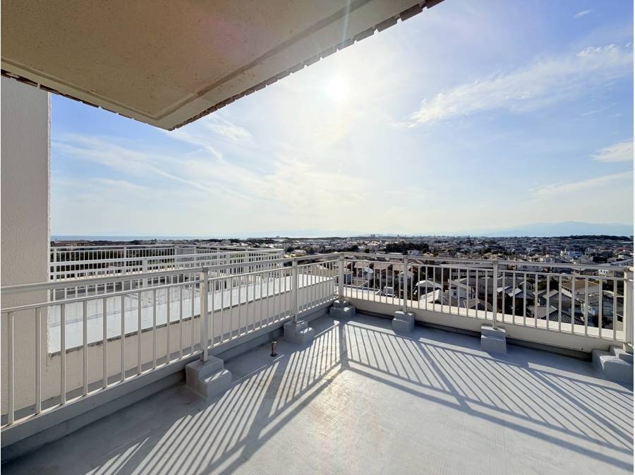 最上階角部屋のテラスからは相模湾から雄大な富士山まで一望!