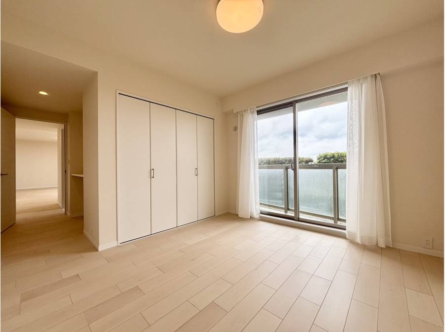 住戸の中心となるLDKは約24.4帖の広さを確保し、足元から温める床暖房を新たに設置しました 。浴室は1620サイズの大型ユニットバスへ交換しており、隣接するバスコートが開放感を演出します 。各居室は5.3帖から9.0帖までの広さがあり、ウォークインクローゼットや複数の収納スペースにより、居住空間を有効に活用いただけます。