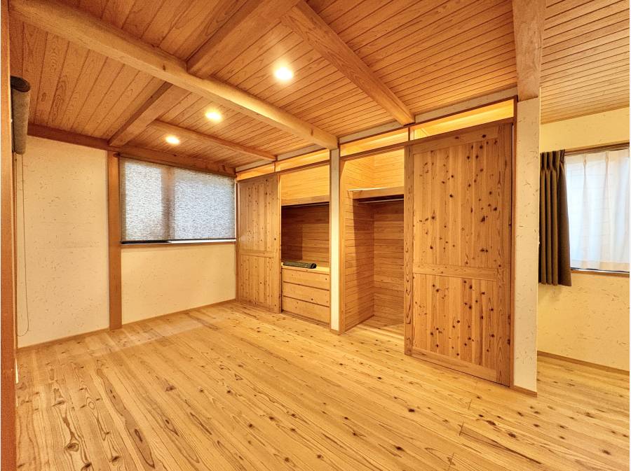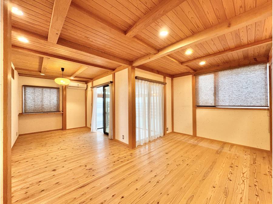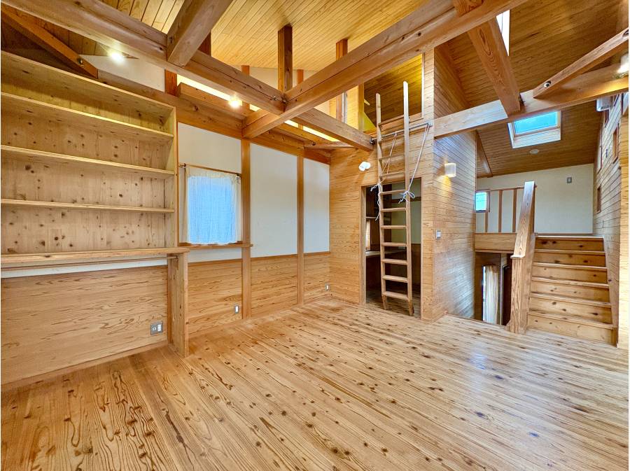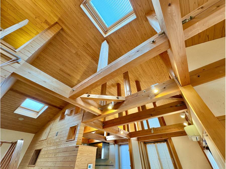 LDKの天井を見上げれば、ダイナミックンな構造のあらわしが美しく映え、どこに身を置いてもくつろげる癒しの空間です。