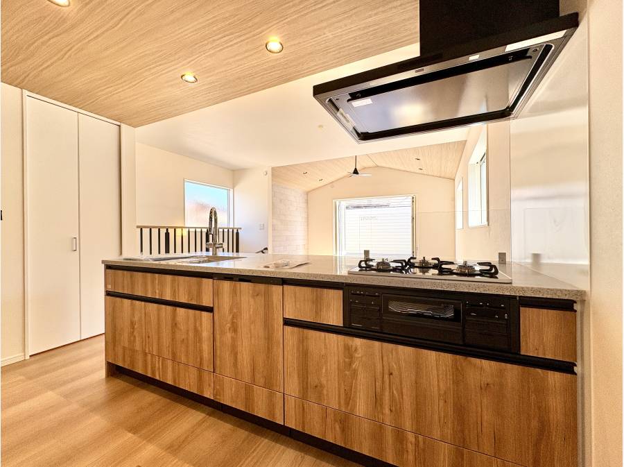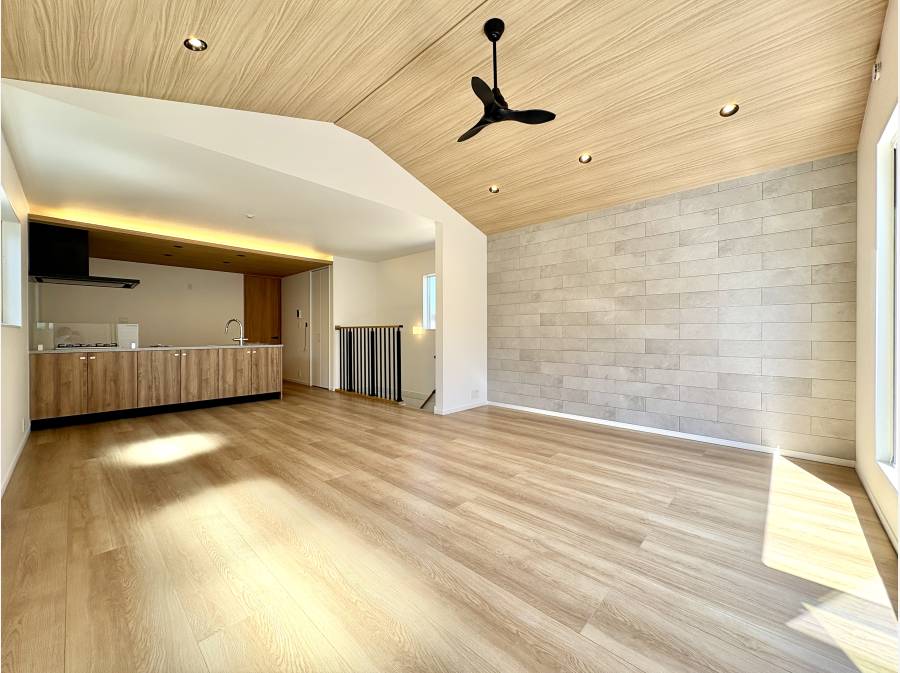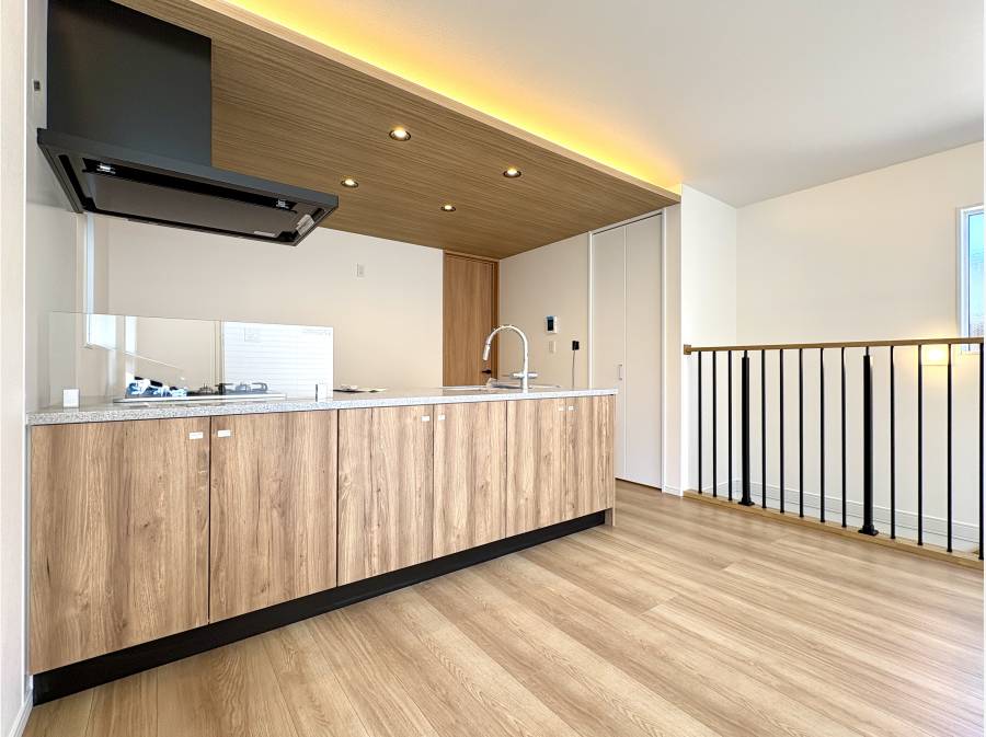 2階に配された21.0帖の広々としたLDKは、対面式のカウンターキッチンを備えた開放感あふれる住空間です。