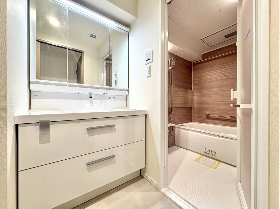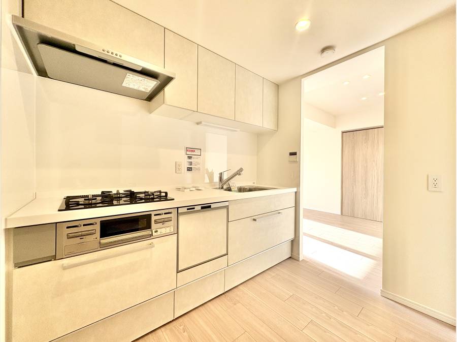 食洗機付システムキッチンや追焚・浴室乾燥機付のバスルームなど水回りを一新し、全室のクロス貼替や遮音等級LL45のフローリング施工を施しました。