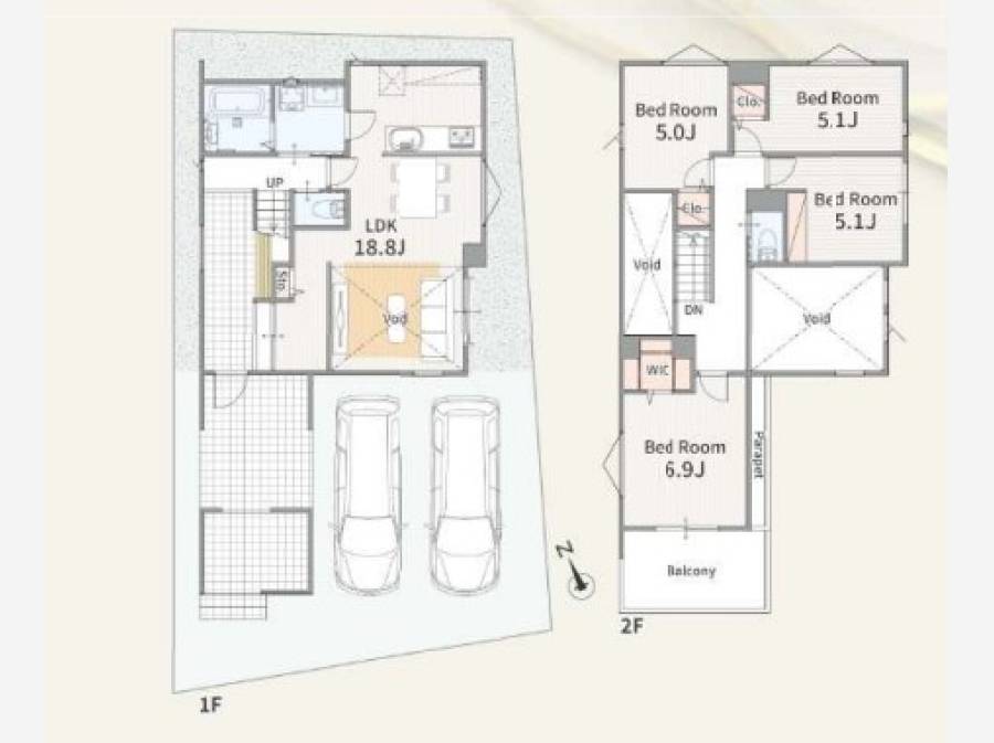 約42坪のゆとりある敷地には、ゲストを招いても安心な2台分のカースペースを確保。