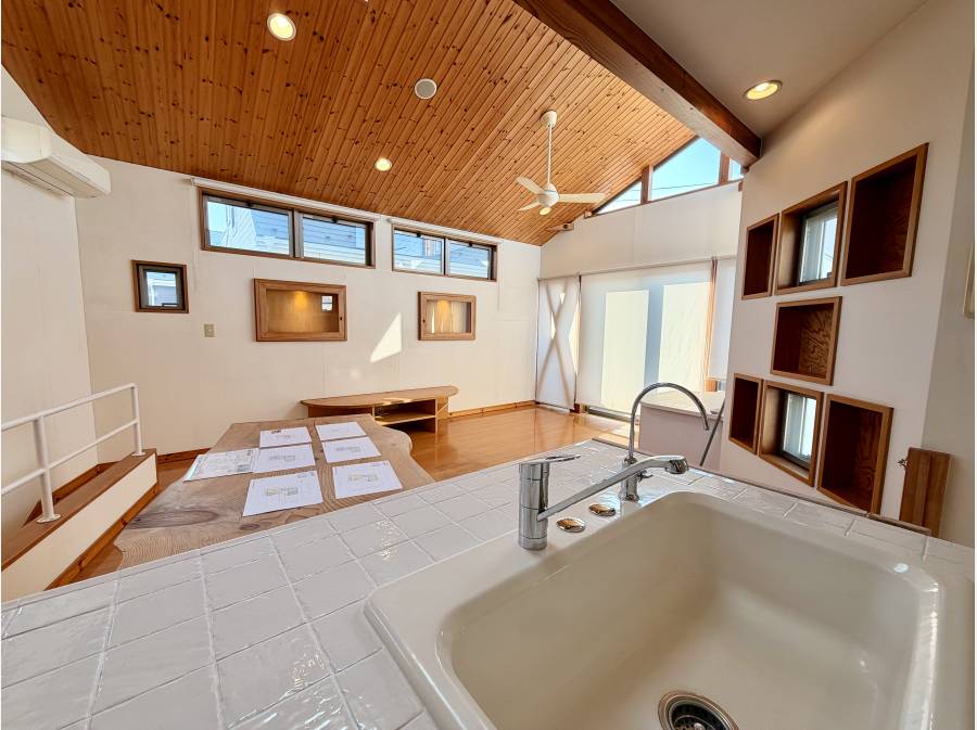 2階のLDKは19.6帖、天井の吹き抜けは空間全体を広く感じさせてくれます。