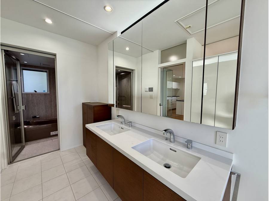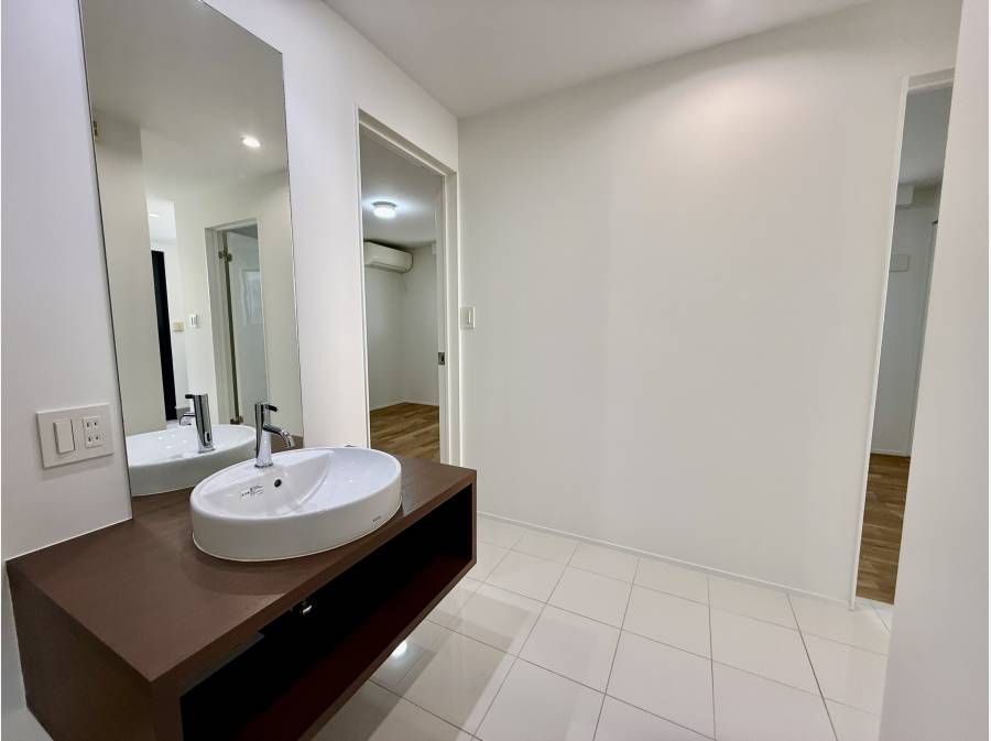 隣接するサニタリースペースは大容量のストレージを備え、