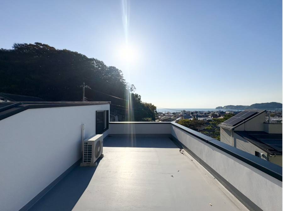 屋上に上がるとアウトドアリビングにもなる大型のルーフバルコニー!