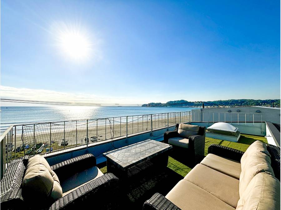 屋上のスカイバルコニーからはパノラマでオーシャンビューが広がり、鎌倉花火大会の開催時には特等席に!