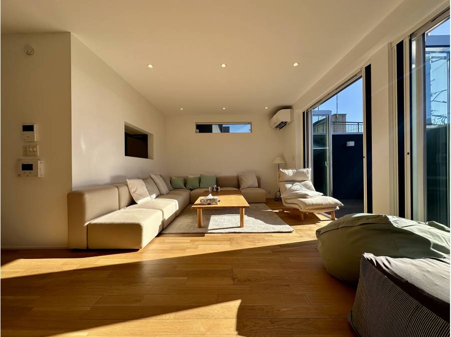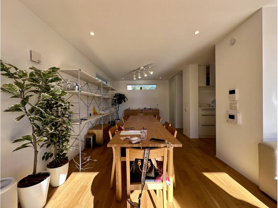 2階に配置されたLDKは約27帖で、南向きの大型の窓から陽が燦燦と降り注ぎます
