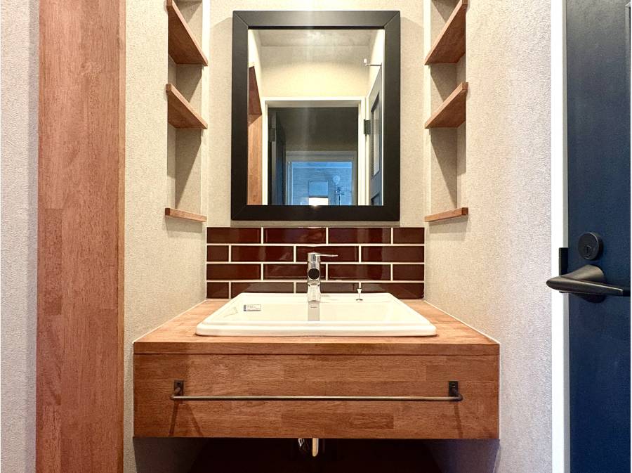 石張りの壁や、造作独立洗面台もこだわりを感じます。