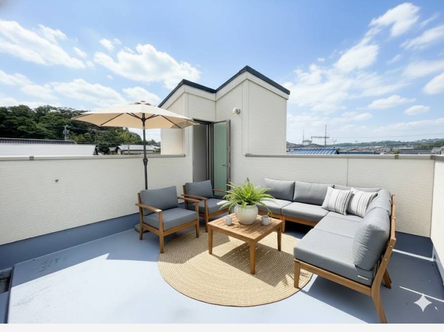 江の島を一望できるルーフバルコニー(家具はイメージです)