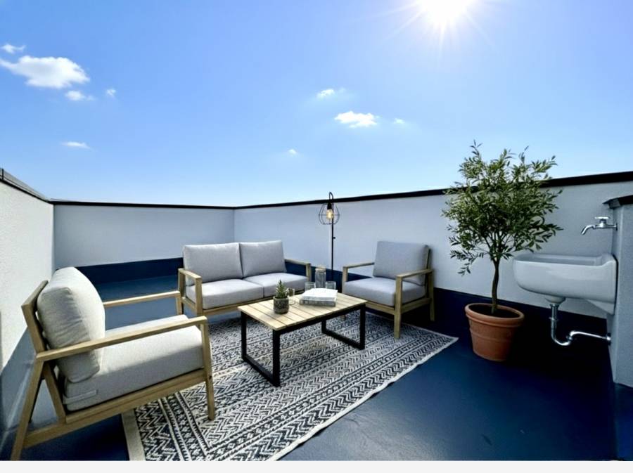 お庭がわりのルーフバルコニー。家具等はCGで作成したイメージです。