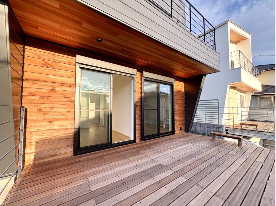 屋上のルーフバルコニーでは、鎌倉の緑を眺めながら読書や家族団らんを楽しめます。
