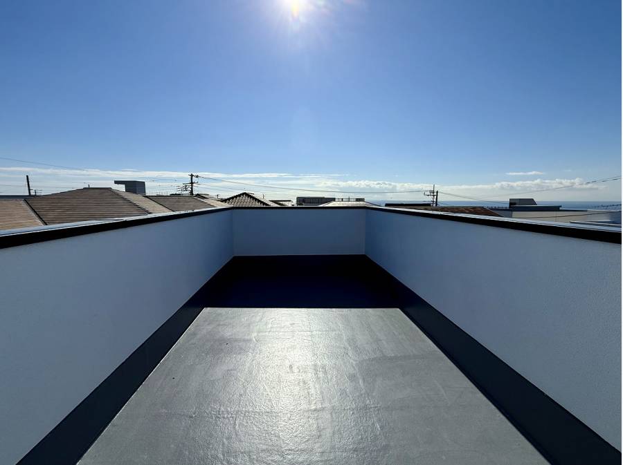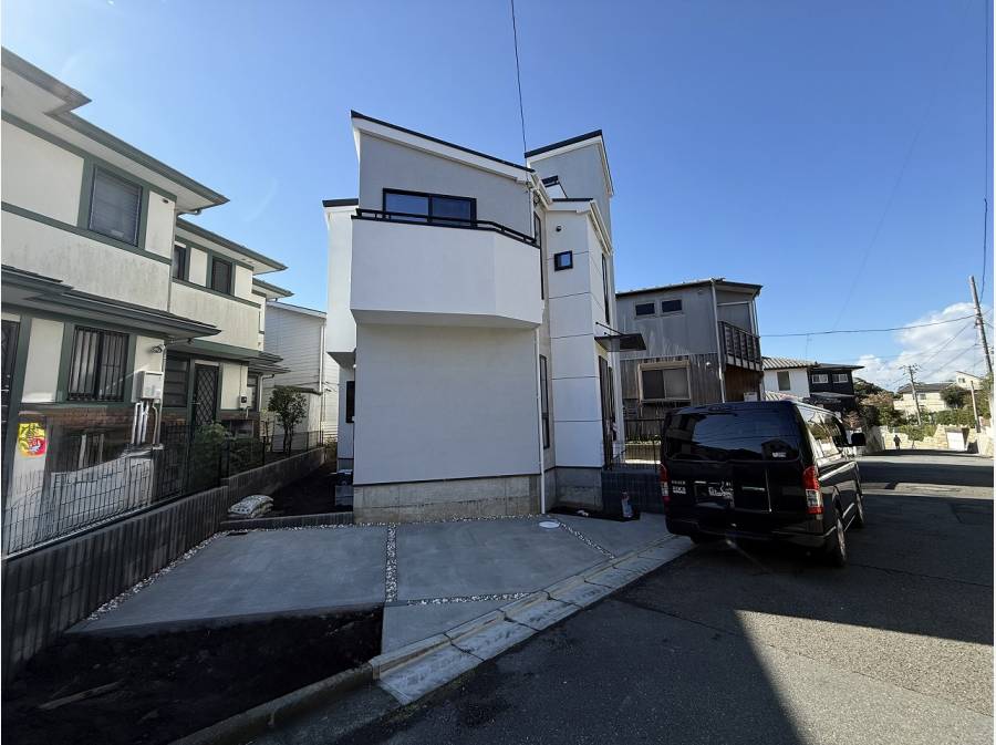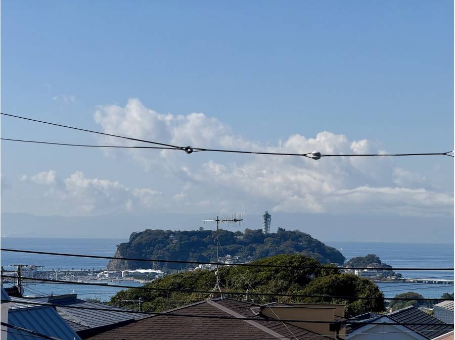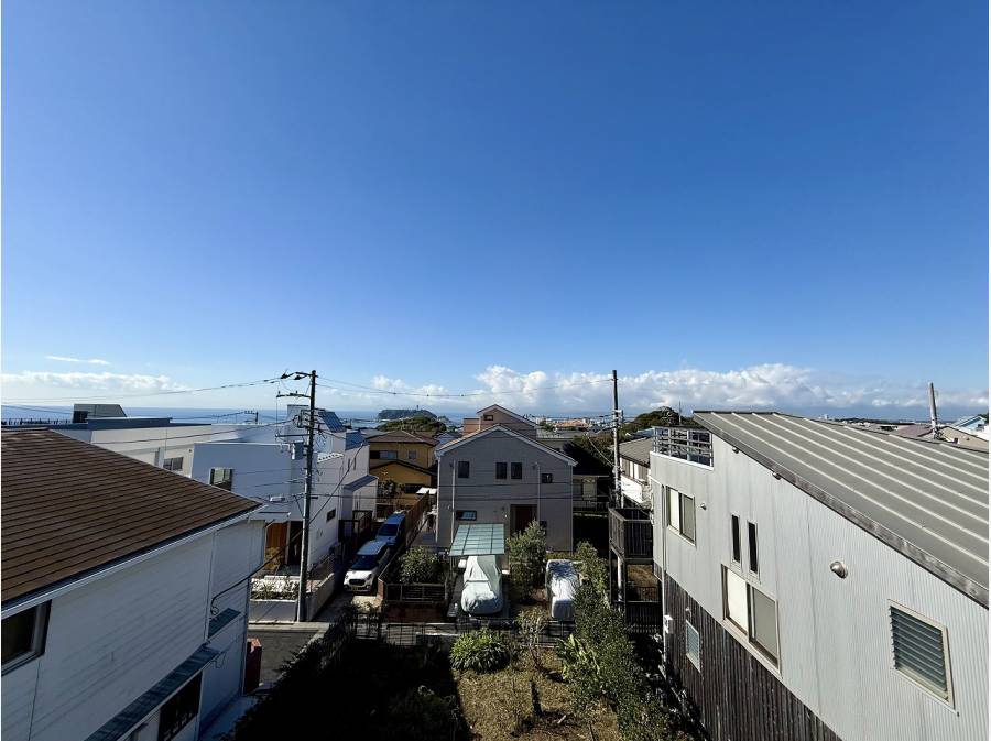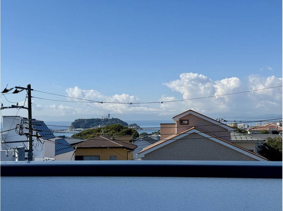七里ガ浜の高台にあり、海や江ノ島の景色を楽しめる新築戸建です。