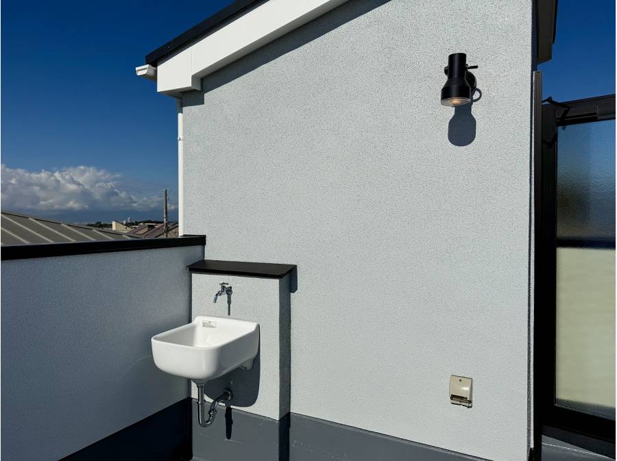 約8畳分の広さを持つ屋上ルーフバルコニーは電源や水栓が備わっており、ランチやバーベキューを気軽に楽しめます。