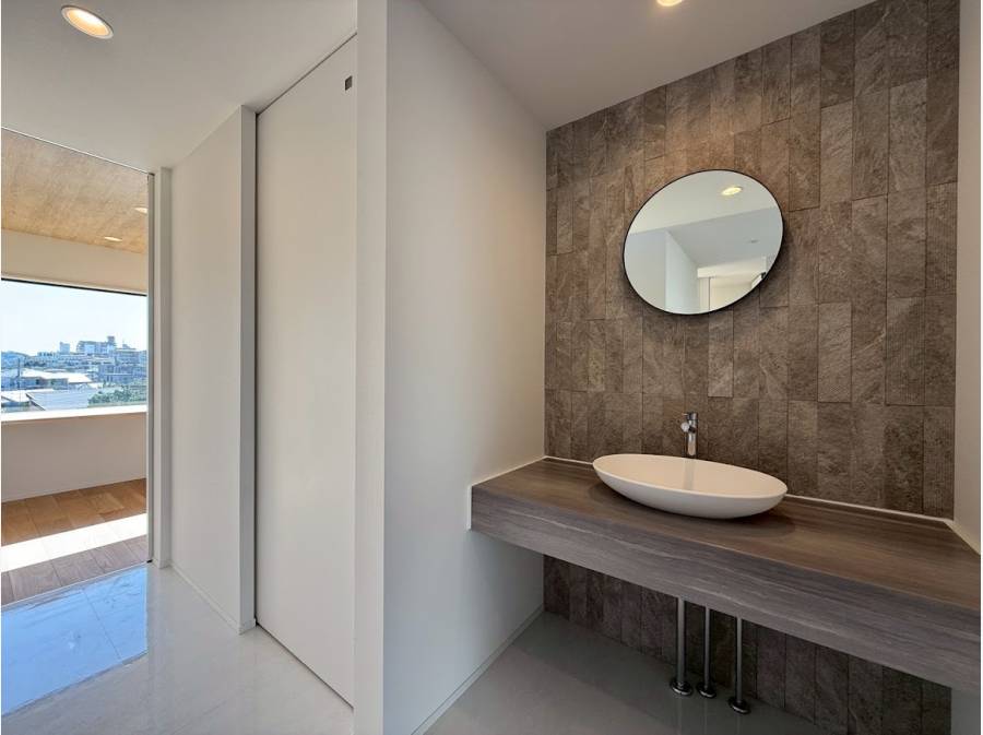 リビングの大型開口窓、静謐な書斎、そして2階のバスルーム。視線の先には常に湘南の海が広がり、五感を穏やかに満たしてくれます。