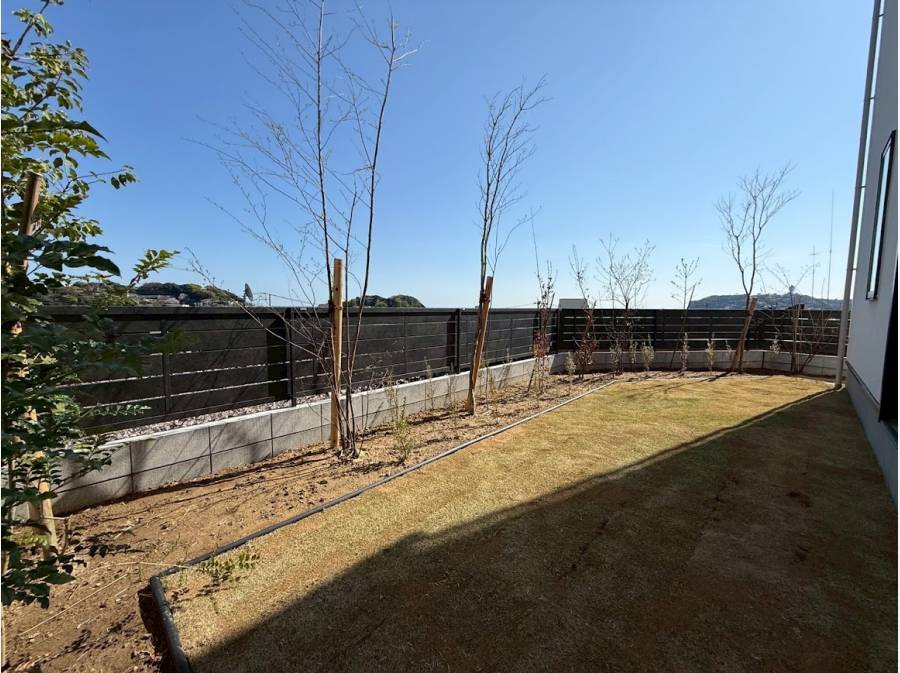 大きなお庭からは海を望む眺望(家具はイメージです)