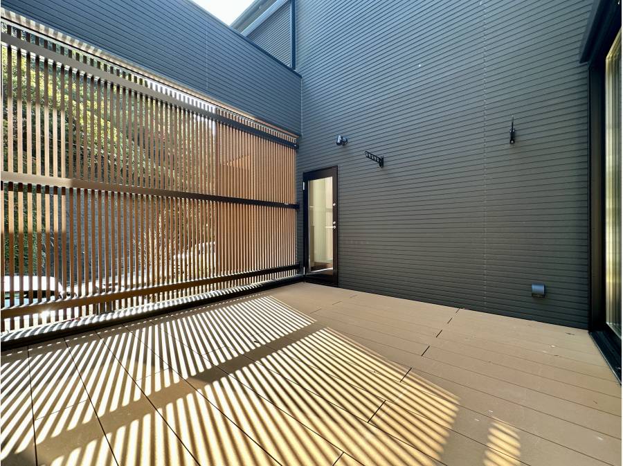 エクステリア付きの大型ウッドデッキで空間を楽しむ家