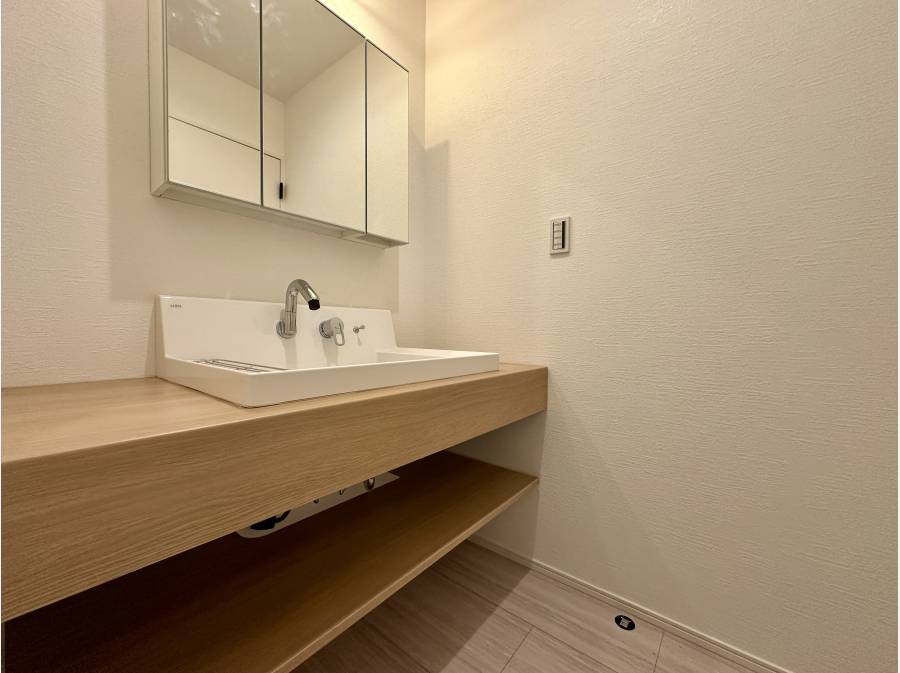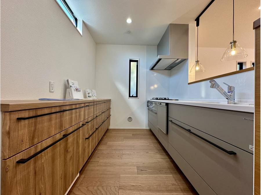 無垢材の造作カウンターや天然木のフローリング材、エコカラット等、充実の設備・仕様で造り手の拘りを感じます
