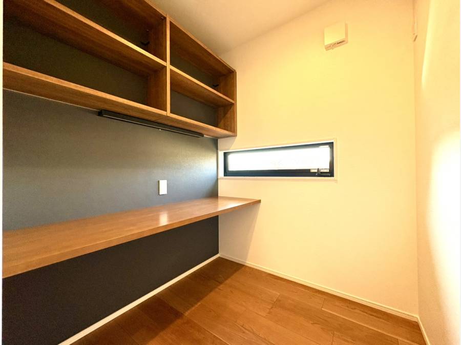 2階には、集中力を高めるプライベートな書斎をご用意しました。趣味や仕事に没頭できる「自分だけの秘密基地」が、日々の暮らしにメリハリと創造力をもたらします。