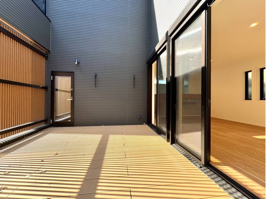 リビングの先には、内と外をゆるやかにつなぐ広々としたウッドデッキが広がります。