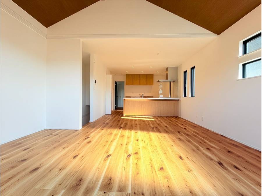 2階に配置されたLDKは、光と風をたっぷり取り込む開放的な空間。