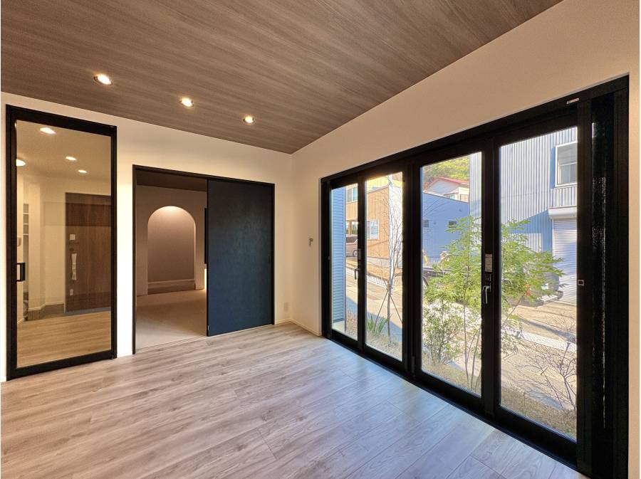 LDKには全開口可能なサッシがあり、開放すると庭と一体感が生まれます。