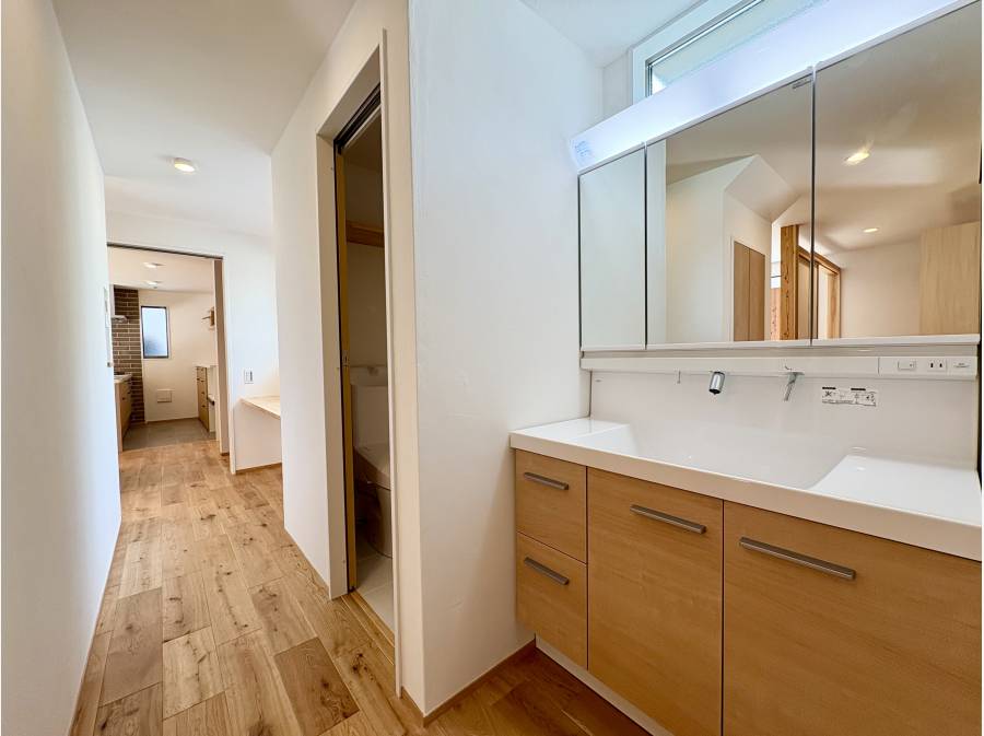 平屋を基調とした間取りは、生活のほとんどを1階で完結するように設計され、シンプルで上質なインテリアが映える、木のぬくもりを感じられる空間です。