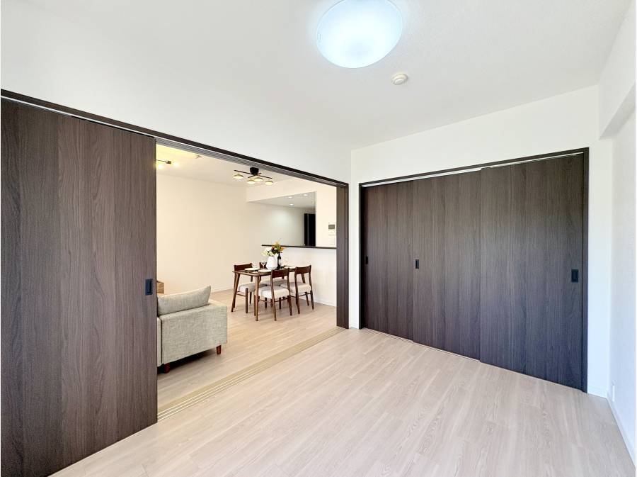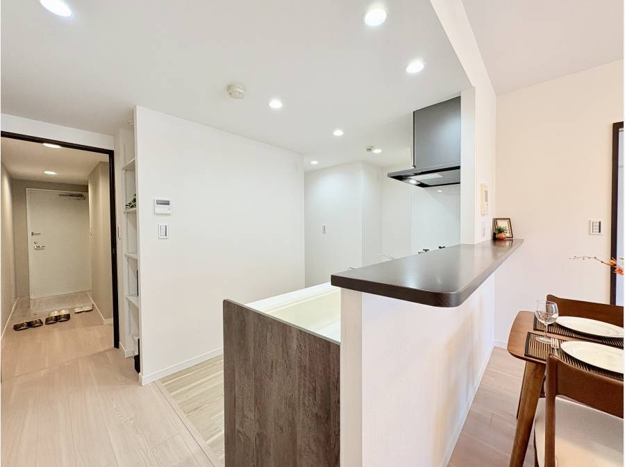 対面式のキッチンスペースご家族と会話を楽しみながら調理できます。南向きのバルコニー洗濯物もよく乾きます。