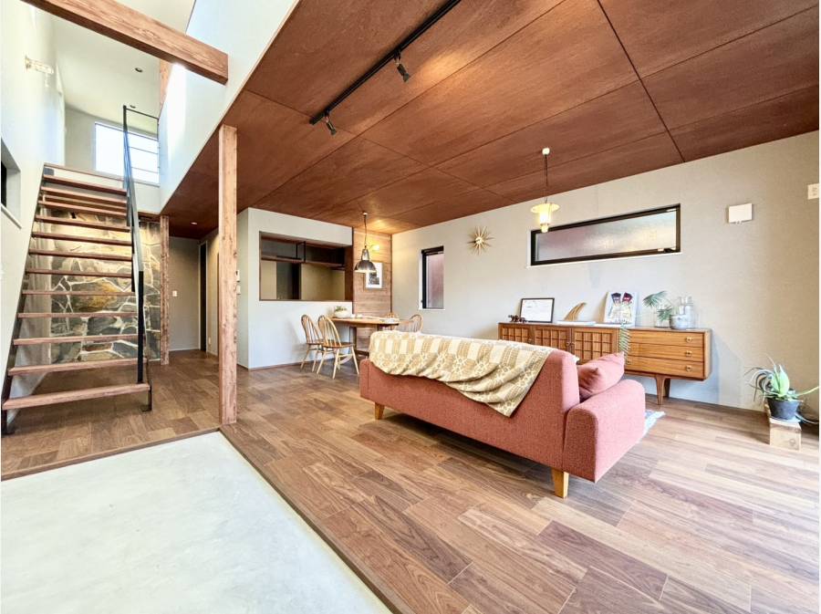 ブラックの外観が印象的な新築戸建。シンプルだけどとことんかっこいい一棟。中に入ると、まず目に飛び込んでくるのは広い土間と、空間を縦に抜けるスケルトン階段。そして上部吹き抜け設計が家全体にゆとりと開放感をもたらしてくれます。フリースペースもあるので、ワークスペースや趣味部屋としても活用OK。ウッドデッキも完備していてちょっとしたアウトドア気分も楽しめます。「西鎌倉」駅徒歩10分、だけど周辺は緑も多くて静かな環境。建売っぽくない「自分の感性にフィットする家」を探している人に、ぜひ見てほしい一棟です!