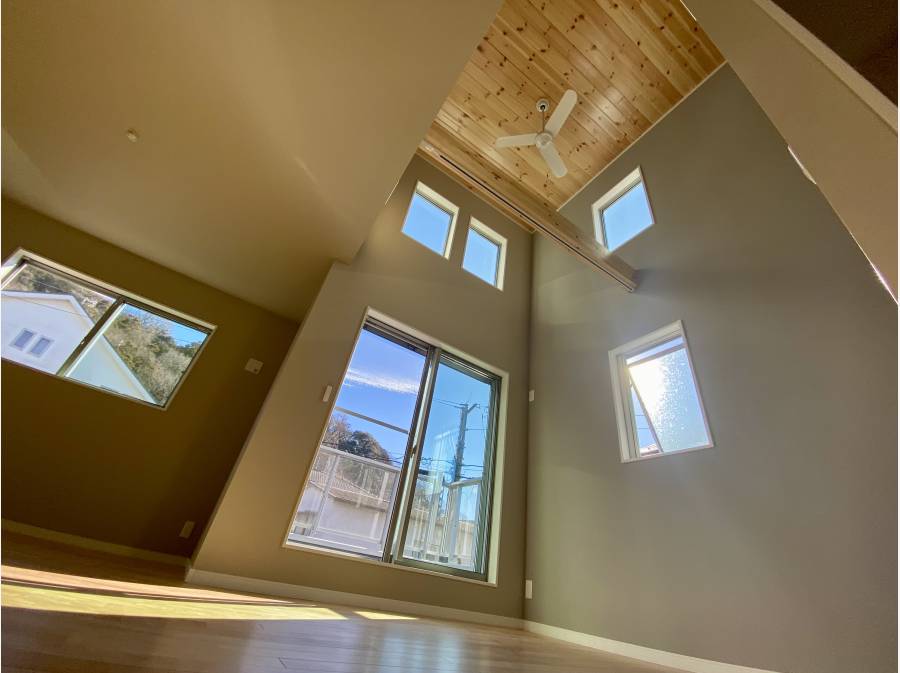 2階LDKは、17.2帖。吹き抜けと羽目板天井が、明るく温かなリビングを演出。家族みんなが集まり、くつろぎの時間を過ごせます。