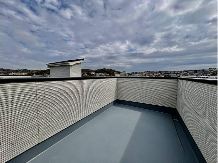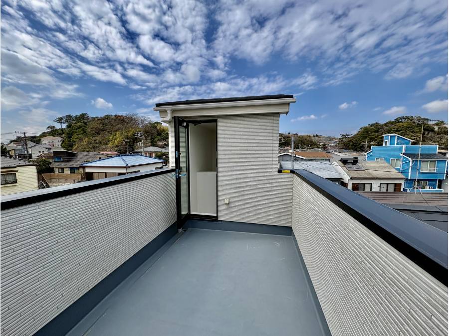 閑静な住宅街。ルーフバルコニーからは江の島が一望できる。