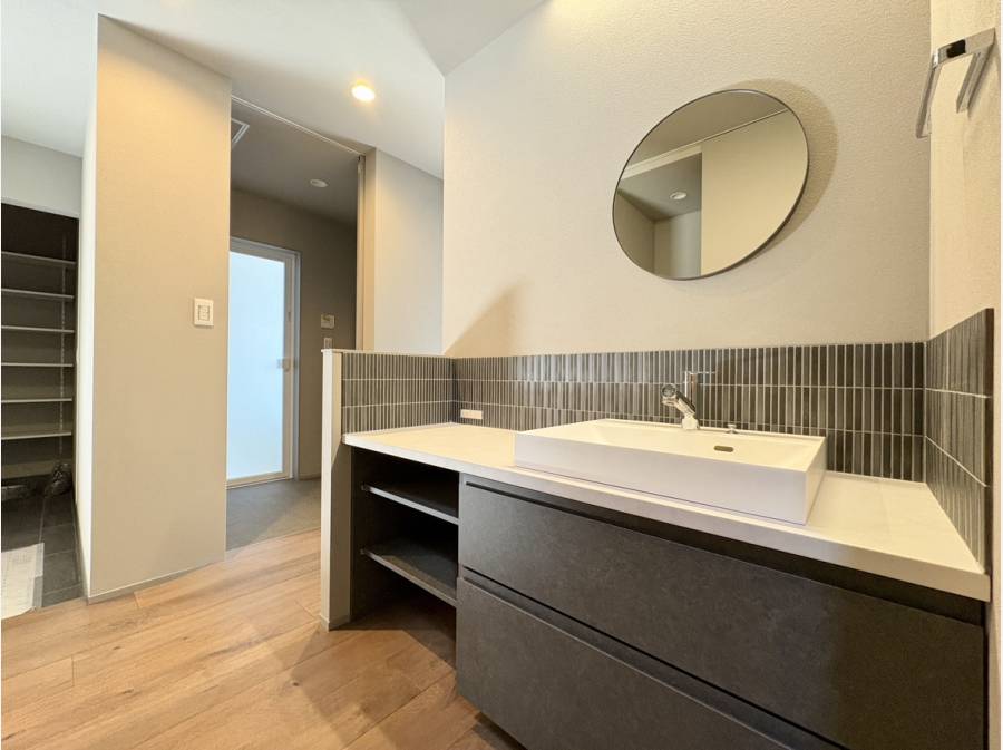 お洒落な独立洗面台を、玄関とLDKの間に配置した使い勝手の良い動線
