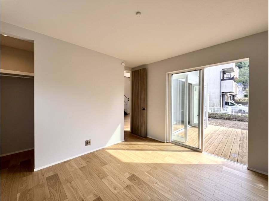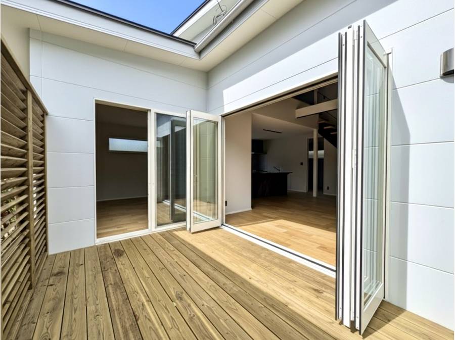 リビングの扉を開ければそこは光あふれるウッドデッキ