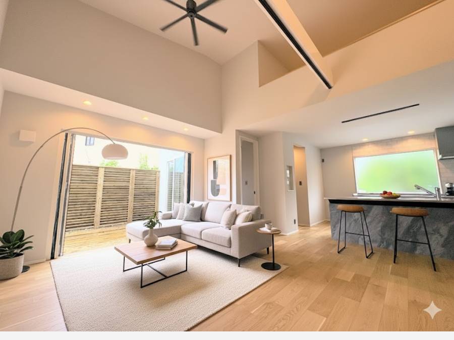 LDKとウッドテラスが一つになる、空とつながる贅沢なワンフロア