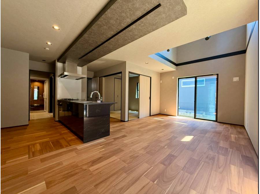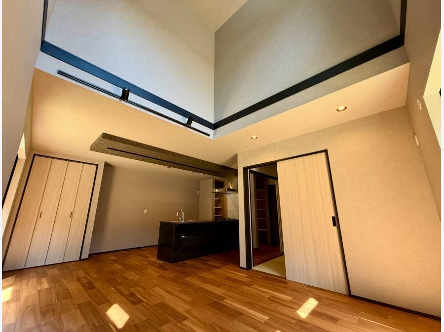 約17.2帖のLDKは上部吹き抜けで開放感があります。