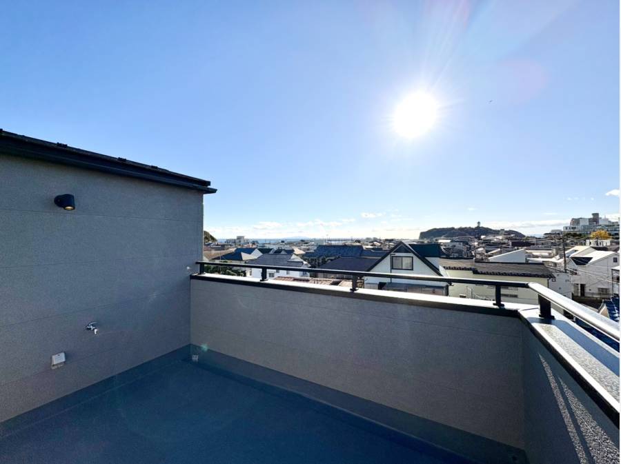 リビング上部は吹抜けで、木の温もりと鉄骨の手摺がアクセントとなり、デザイン性の高い空間を実現。水回りをワンフロアに集約し、家事動線もコンパクトです。海と江の島を望むルーフバルコニーは、花火大会をプライベートな空間で楽しめる特等席。海水浴やサーフィンなど、海近ならではの多彩なアクティビティを満喫できる、豊かな湘南ライフをご提案します。