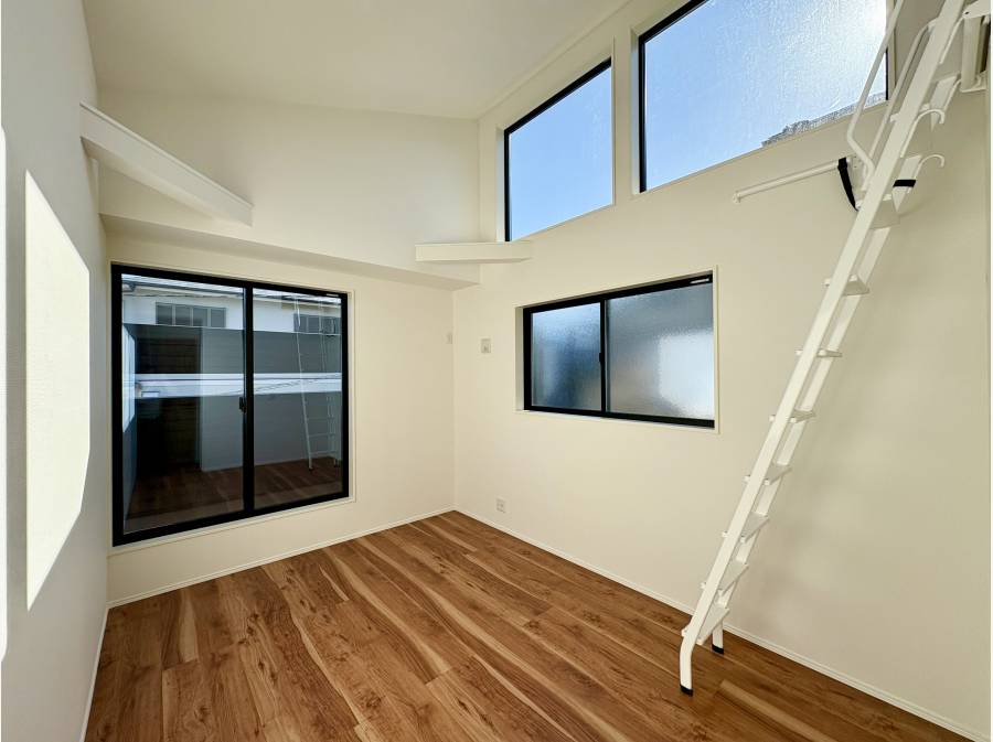 2階の主寝室には勾配天井とロフトがあり、開放的で特別感のある空間設計がされています。また、2面バルコニーは採光や風通しに優れ、日常に心地よい風をもたらします。