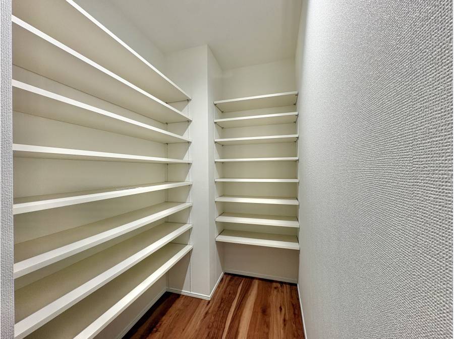 キッチンには大容量のパントリーを設け、収納力を確保しました。