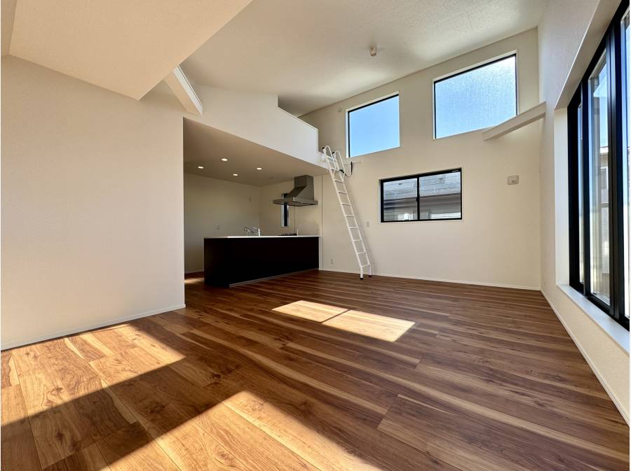 LDK: 開放感あふれる勾配天井で、明るく広々とした雰囲気が漂います。