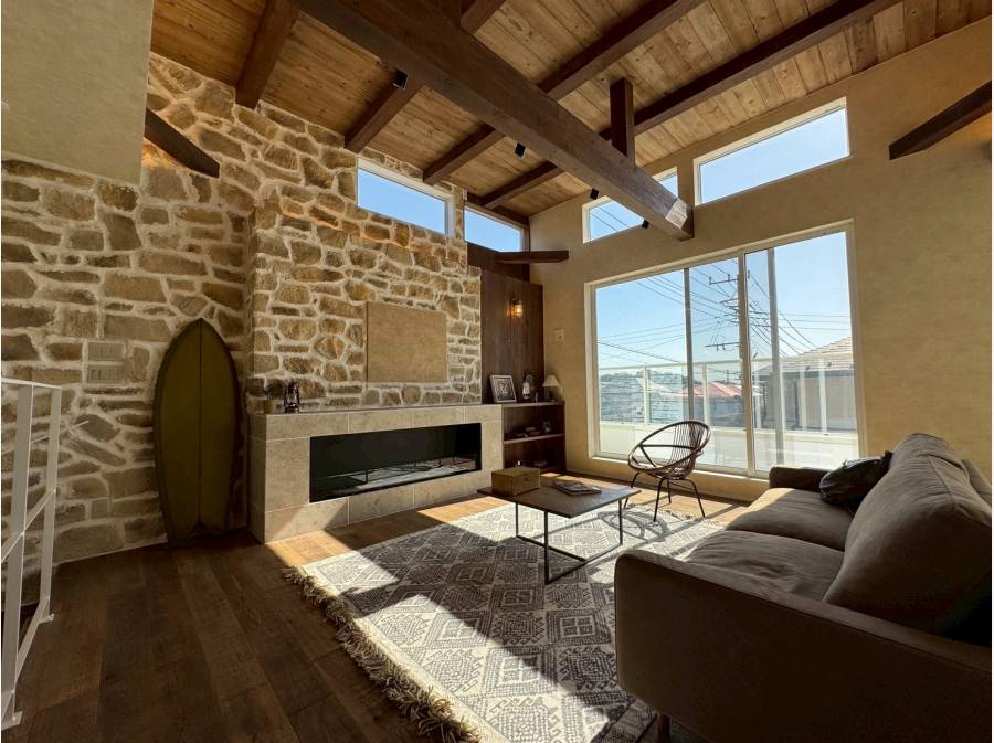 オーシャンビューを日常に。古材の温もりと洗練されたデザインが融合する、ガレージ邸宅