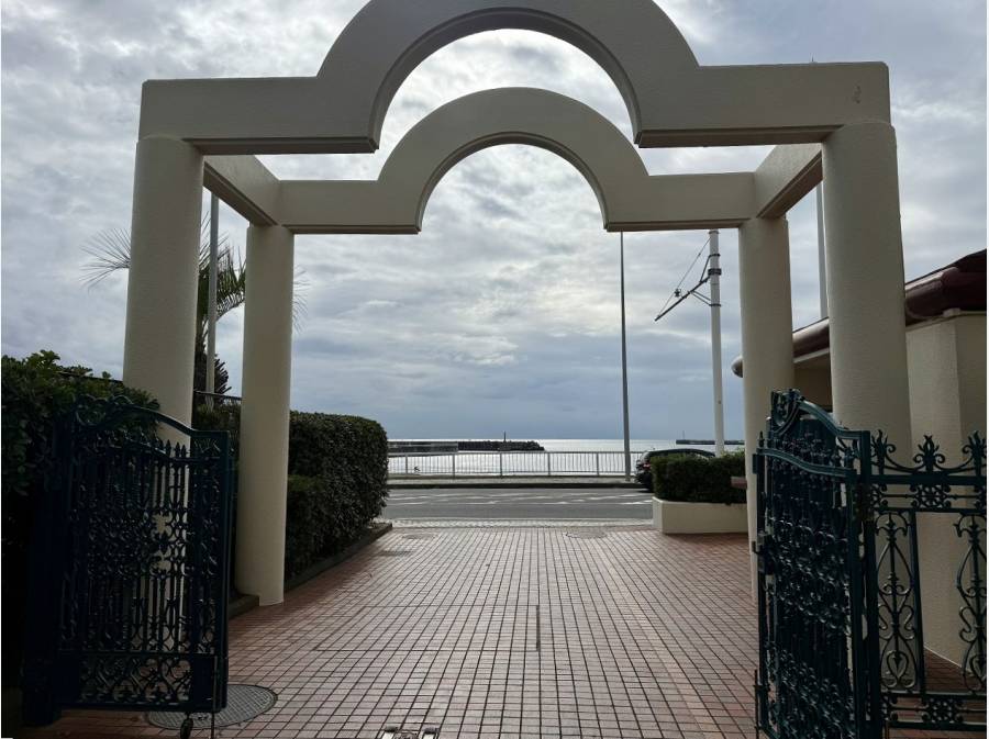 マンションエントランスを出ると目の前に腰越海岸~片瀬東浜海岸の砂浜が広がります。