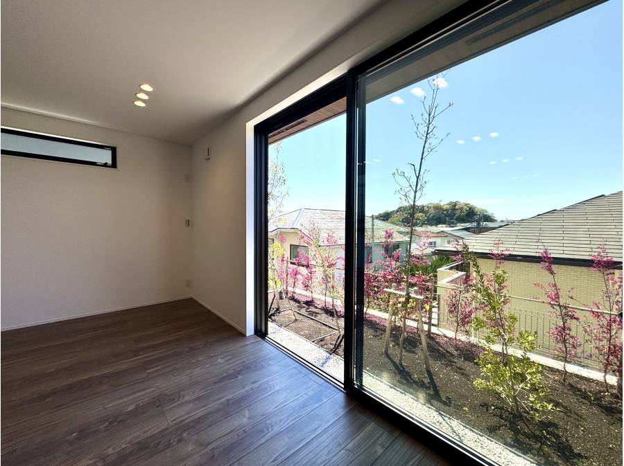 大きな窓の先には四季折々の表情を見せるプライベートガーデンが広がり