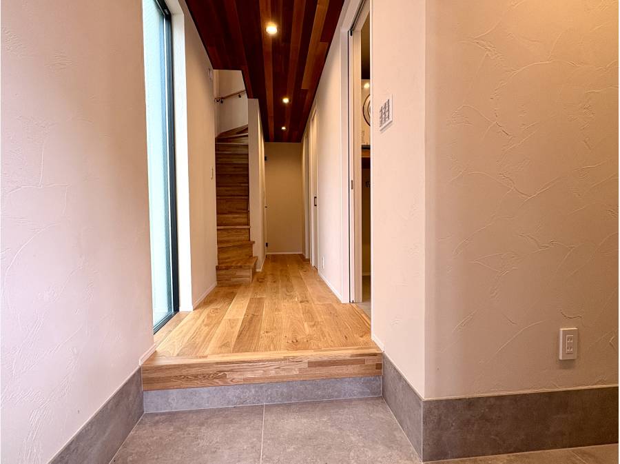 玄関から水回りへとスムーズに繋がる動線が計画され、