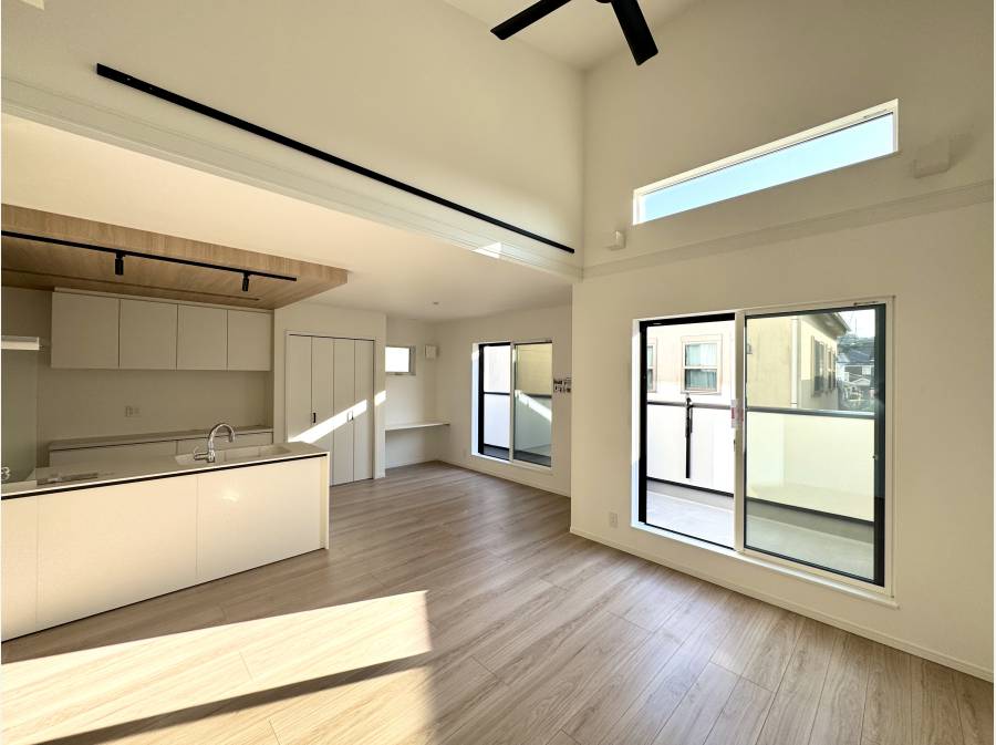 吹き抜けのLDKは開放的で家族が和らぐ空間となります